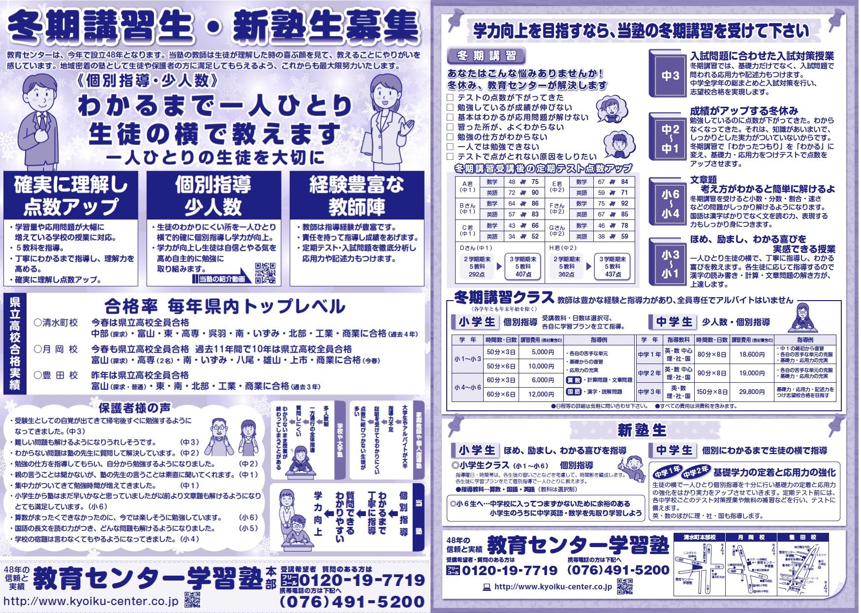 2025/11/27 冬期講習・新入塾生募集のお知らせを公開しました。